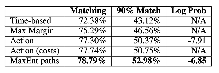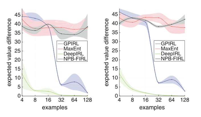 • Compared against Linear MaxEnt, GPIRL, NPB-FIRL