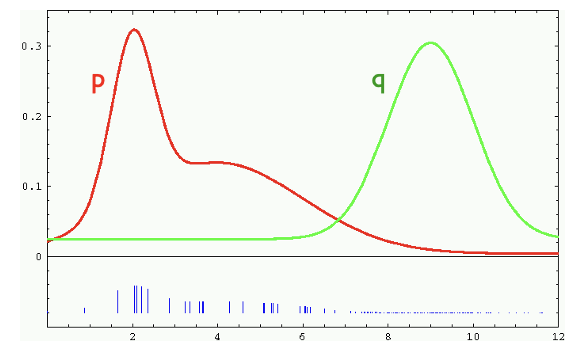 How to estimate properties/statistics of one distribution (p) given samples from another distribution (q)